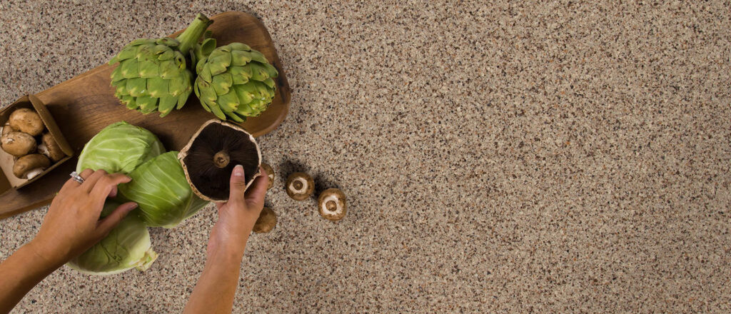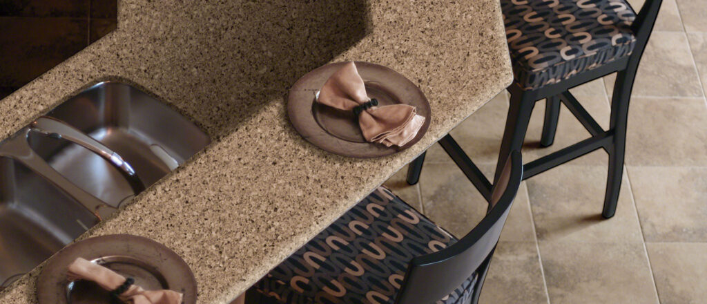 Translucent taupe stones are suspended in our fawn Bedrock Quartz, accented by deep slate and cocoa. These 2 cm and 3 cm polished slabs are ideal for both residential and commercial installations and are recommended to craft beautiful brown quartz countertops, backsplashes, shower surrounds, accent walls, table and bar tops, and even floors. There’s nothing quite as earthy and elegant as Bedrock Quartz