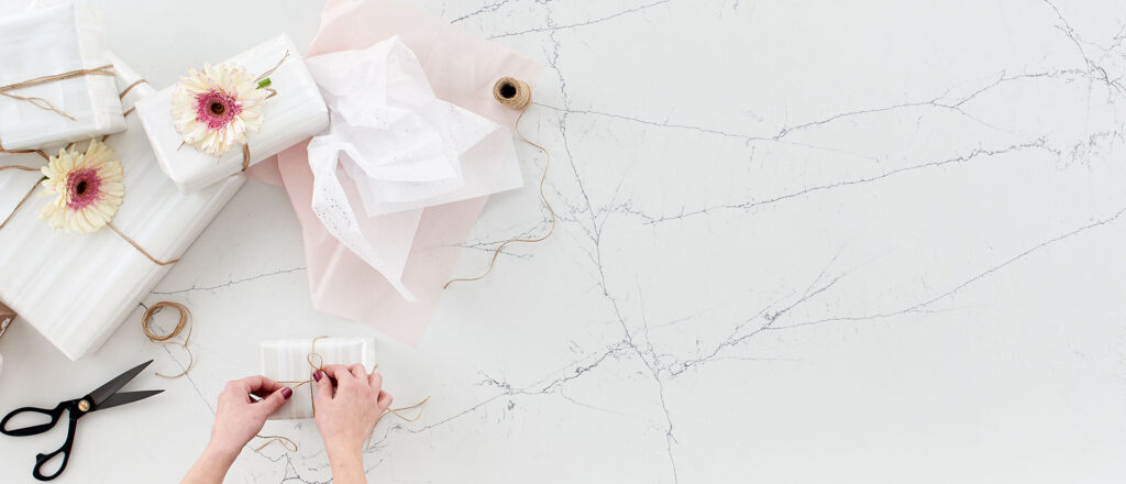 Luxury aesthetics and life-long durability come together in Calacatta Montage Quartz, featuring a soft white background with delicate dove gray veining throughout the slab. Replicating the sought-after look of Italian marble, this gorgeous look creates white quartz countertops, waterfall islands, backsplashes, floors, and more for an instant upgrade. Get the look of elegance with this high performance, easy-care quartz