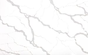 Dramatic veins flow throughout the striking Calacatta Sierra Quartz, offering a marble-like aesthetic with quiet sophistication. Neutral and cool tones are woven throughout the slab as gray thick veins in a diagonal interconnect with thin veins, giving the white quartz background a balanced and symmetrical look. Create eye-catching countertops, backsplashes, or kitchen islands with Calacatta Sierra. The product is durable, easy to clean, and virtually maintenance-free and is ideal for a range of architectural design styles in both homes and commercial properties.