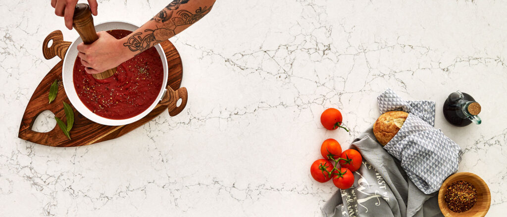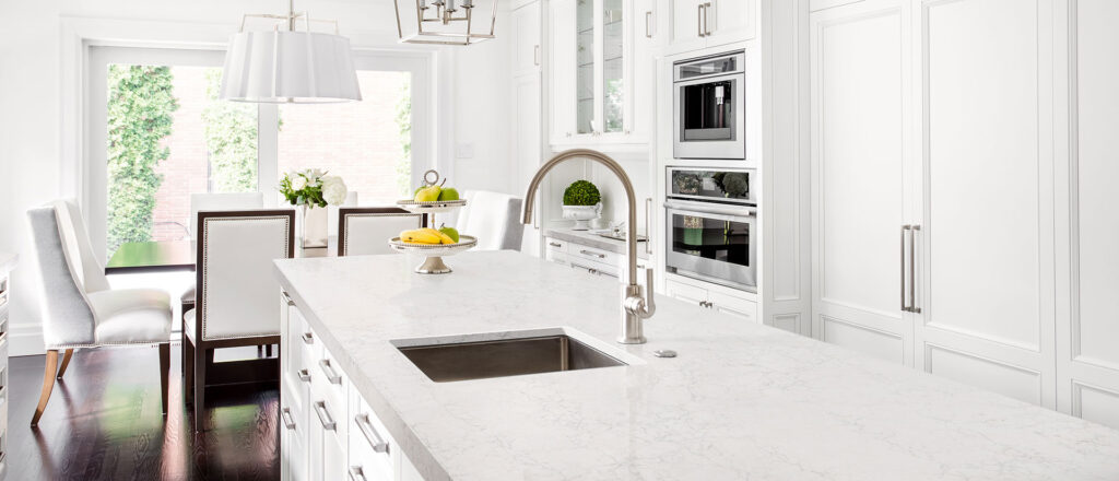 Lido Blanco Quartz features intriguing web-like gray veining set against a dusty white background that brings luxury appeal as white quartz countertops, waterfall islands, accent walls, floors, showers, and more. A preferred choice for homeowners and homebuyers, Lido Blanco is germ-, stain-, and heat-resistant for modern practicality with a timeless marble-look. This premium quartz is the ideal choice in residential and commercial properties, for kitchens, baths, or almost anywhere you desire a touch of understated elegance.