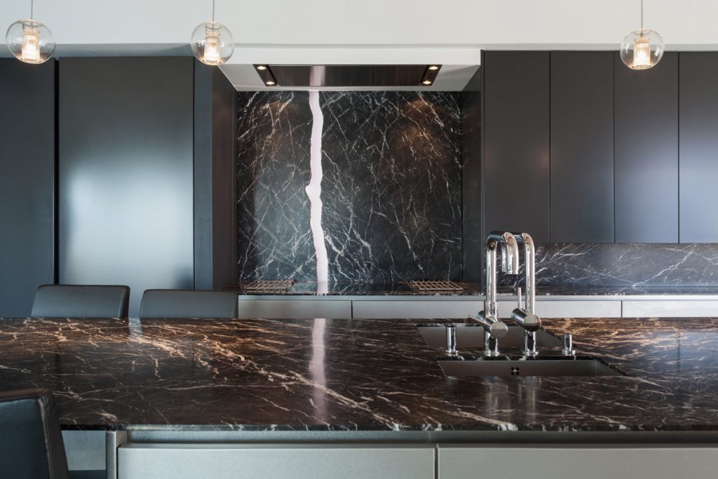 Black Forest granite is a dark grey to black gneiss of the Precambrian period with many white veins and decoration together with dark patches. This stone internationally may be nominated as a granite but in the area of application of the European Standard this stone must be nominated as a gneiss. The veining and color vary considerably therefore a small sample of Black Forest granite may not be representative of the whole slab therefore swatch samples must be approved for large projects to ensure that the blocks are all extracted from the same quarry face for matching purposes. During the polishing process, a clear epoxy resin filler may be used to fill any micro fissures or tiny pitting however this does not affect the integrity of the stone, it merely provides an even smoother surface finish. Black Forest granite is suitable for both interior and exterior use furthermore is frost resistant and with a constant polish.